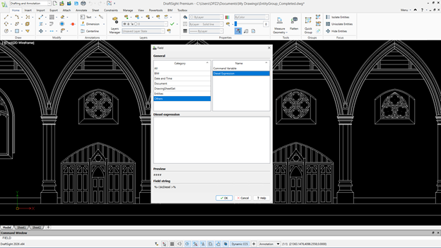 The Field command now includes DIESEL Expressions, enabling dynamic text that automatically updates based on drawing properties or user inputs.